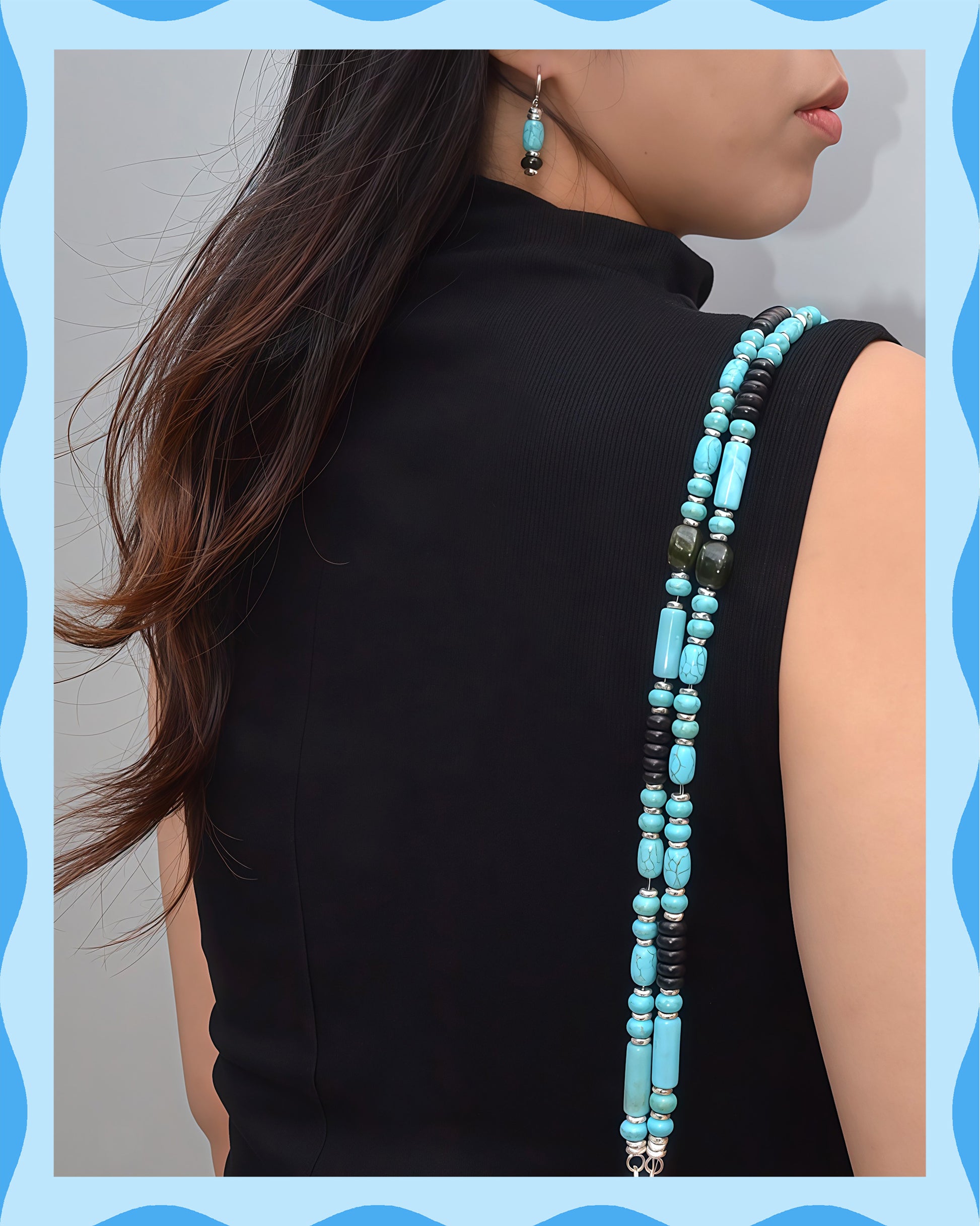 각 제품은 터키석 비즈로 장식된 보헤미안 스타일의 목걸이 로 구성되어 있으며, 장난기 넘치고 시선을 사로잡는 동시에 두 분의 인연만큼이나 특별함을 선사합니다. 사랑을 담아 수작업으로 제작된 이 컬렉션의 모든 아이템은 두 분이 나누는 행복을 담아냅니다.