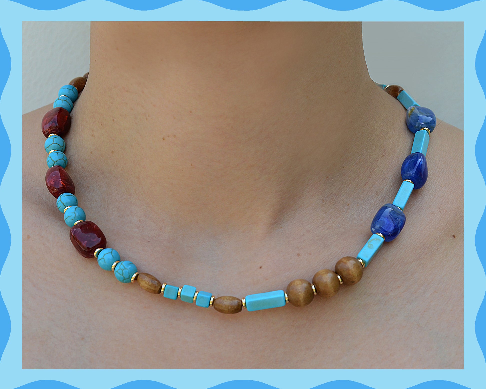This vibrant boho-style collection is made to spark joy for both pets and their humans. Each piece features a natural blend of rustic resin beads, turquoise-colored beads, and organic wooden beads, carefully arranged in irregular shapes for a free-spirited, earthy charm — creating playful, eye-catching accessories as unique as your connection.